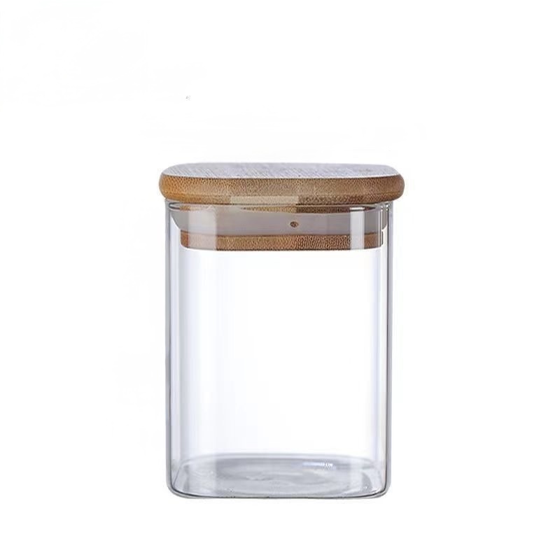 Glass Canister rectangle with wooden Lid